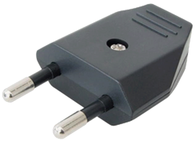 ![]() | Spina di un apparecchio in DOPPIO ISOLAMENTO, ossia senza collegamento di terra. |