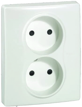 ![]() | Presa a muro doppia per utenze in DOPPIO ISOLAMENTO. Sia la presa che la ciabatta non devno consentire l'inserimento di spine che presentino anche il contatto di TERRA. |