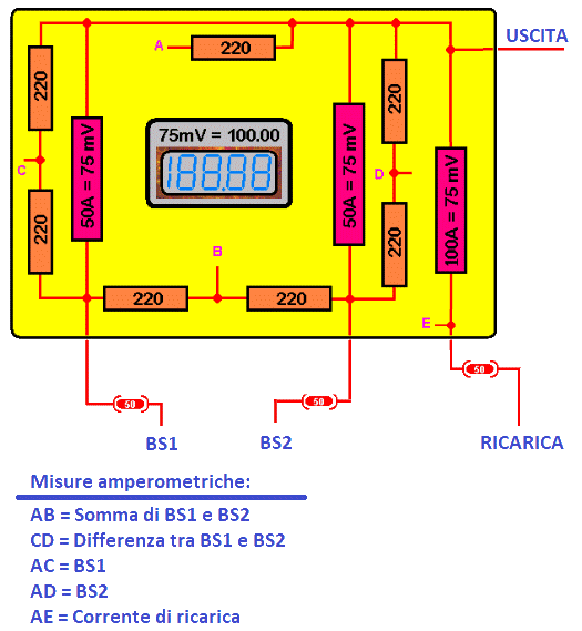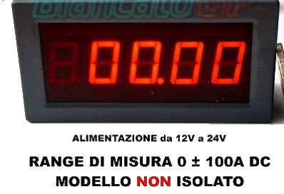 N.B. Un amperometro da 100 ampere è un millivoltmetro presisposto in modo da visualizzare "+/-100.00" con +/-75 milliVolt in ingresso, venduto insieme ad uno shunt che genera 75 milliVolt se viene percorso da 100 ampere