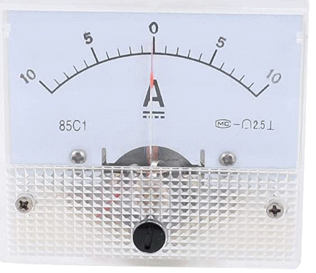 Questo strumento analogico potrebbe essere un millivoltmerto a zero centrale che con -75 mV sposta la lancetta tutta a sinistra, con +75 millivolt la sposta tutta a destra abbinato ad uno "shunt da 10 ampere" collegato anche lontano dallo strumento.